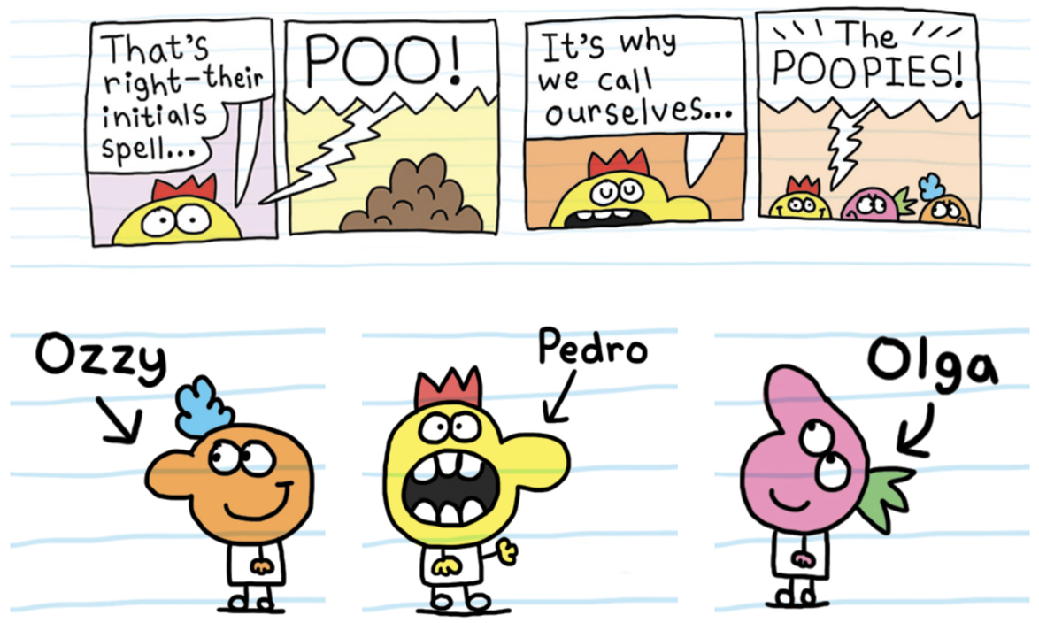 加入好朋友佩德罗(Pedro) 、奥尔加(Olga) 与奥兹(Ozzy)——亦即被称为“便便帮”(The Poopies)——在一系列有趣的冒险故事中同行……